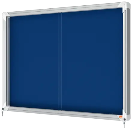 Abschließbarer Schaukasten für den Innenbereich mit blauer Filzpinnwand, Schiebetür aus 4-mm- Sicherheitsglas und Sicherheitsschloss. Der Schaukasten wird von einem modernen Aluminiumrahmen eingefasst und mittels der mitgelieferten Wandbefestigung angebracht. Die hochwertige Filzoberfläche eignet sich bestens zum Anheften und Präsentieren von Dokumenten. Größe: 8 x A4.