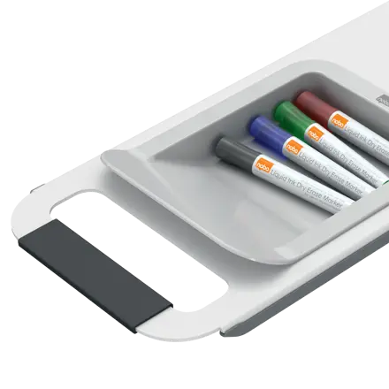 The Move & Meet Mobile Collaboration System offers ultimate flexibility within any work environment, easily configured to perfectly meet your needs. Provided with a mobile base and 2 x removable double sided magnetic whiteboards and 2 x double sided whiteboards/notice boards securely in place. A total of eight surfaces, creating a collaboration area to plan projects and ideas. With a contemporary and innovative curved corner design with a non-slip trim the boards will compliment any environment. Tested according to DIN EN 14434, TUV/GS certified. Complete with an extensive collaboration kit with over 1,900 items. Each board size 1800x900mm.